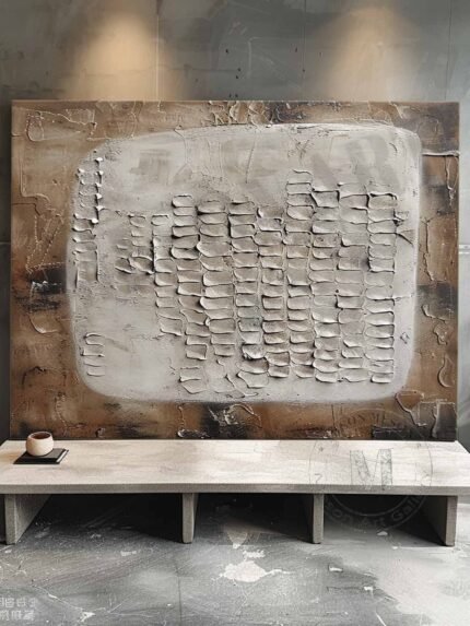 Earthen Glyphs: Large Wabi Sabi Textured Wall Art with a Raw, Stone-Like Finish