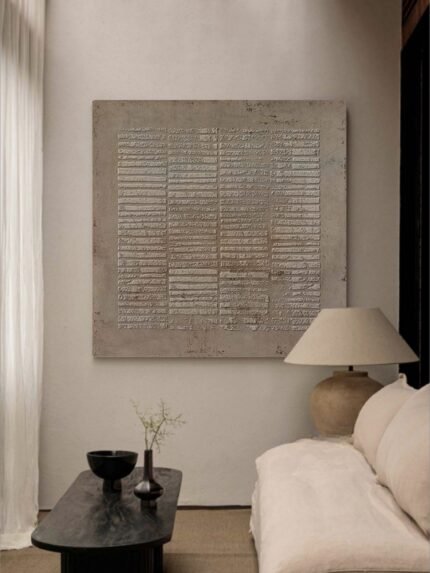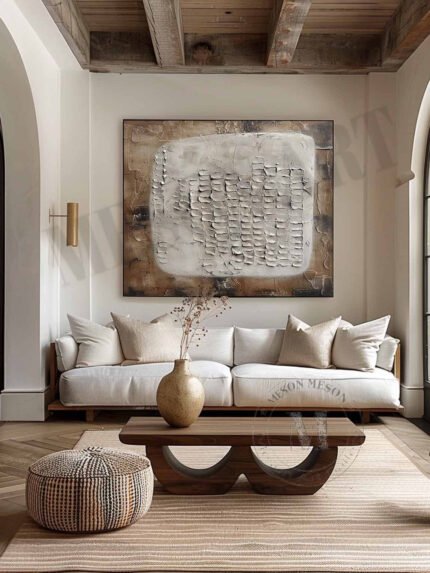 Earthen Codex: Large Wabi Sabi Textured Painting for a Minimalist, Neutral Wall