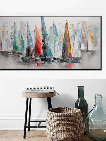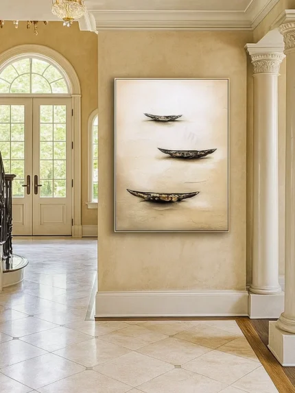 Silent Fleet: A Textured Coastal Abstract Wall Art for Your Hallway