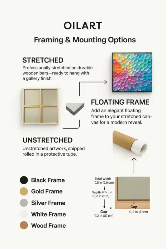 Oilarthub’s textured landscape paintings are particularly effective for this. The physical depth of the impasto technique mimics the organic irregularity of the natural world—stone, bark, waves—creating a deeper, more tactile connection to the earth than a flat photograph. Design a space that heals. View our curated Biophilic Art Collection.