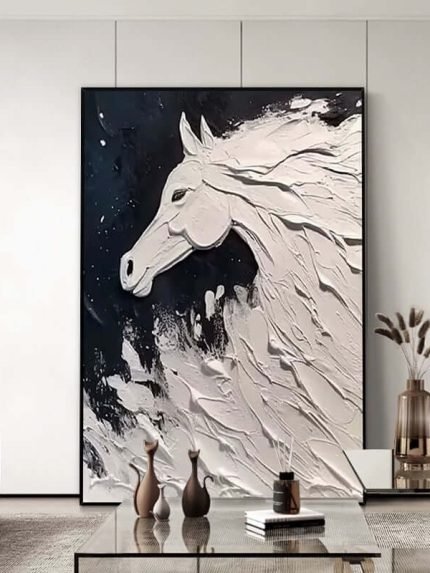 Celestial Steed: A Dramatic Textured Horse Wall Art in Black and White