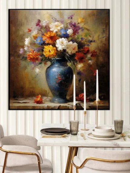 This artwork brings a gentle bloom to life with textured petals and calming blue tones. A timeless reminder of nature’s