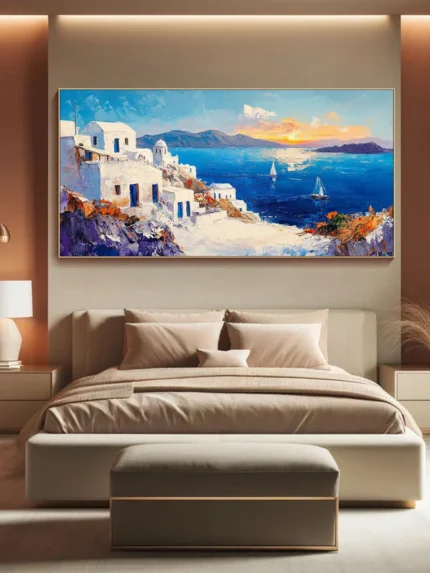 Amorgos brings the magic of the Greek island right into your room. The bright blue sea, white houses and warm