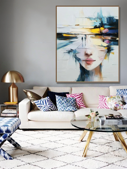 Mindscape Horizon: Surreal Textured Abstract Portrait Painting for Contemporary Decor