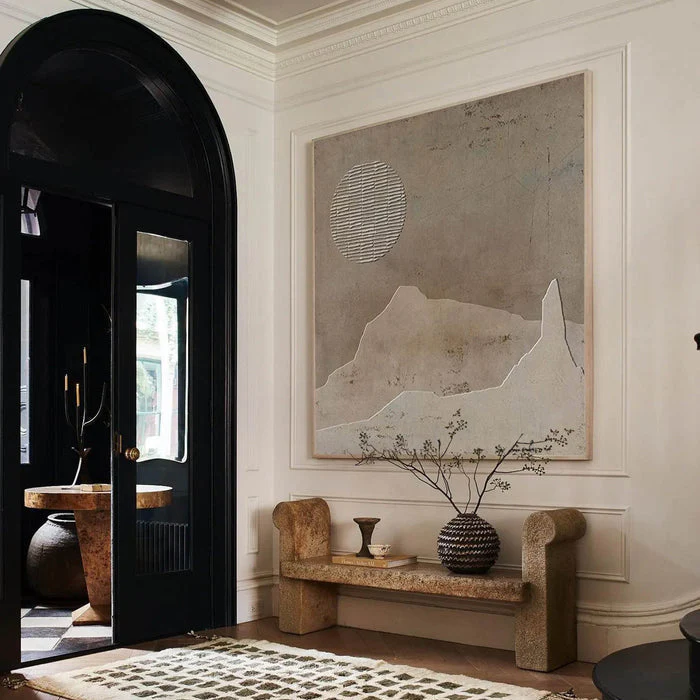 The charm of 1st Moon Rising is in its stillness. The clean lines and soft brown colors make it feel modern, but grounded. That textured moon pulls your eye, like a secret waiting to be noticed. It’s calm and bold, all at once!