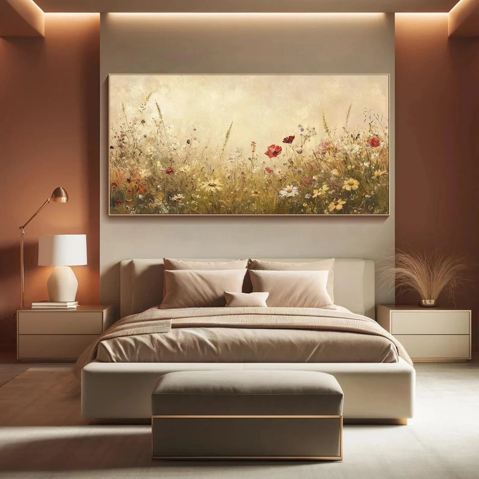 A Field of Dreams captures that perfect moment between summer and fall. The air feels warm, the flowers seem alive, and everything glows in soft light. It’s a painting that brings a natural, relaxed feeling into your home, like a warm breeze that never ends.