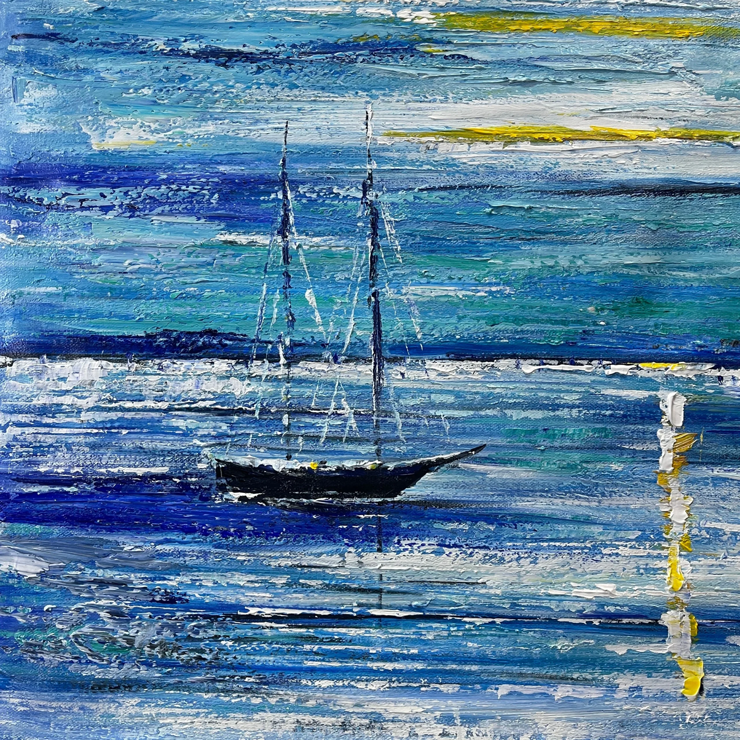 What would we find if we sailed all the way across the ocean? This impressionistic art piece tried to capture this spectacular journey. With a unique painting style and beautiful blue hues, you’ll never grow bored of this piece!