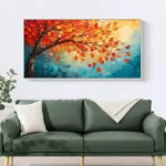 With this vibrant painting, the tree becomes a sky of falling light. In Japanese, ‘Akiboshi’ means shooting star, and you can feel that magic in every leaf. The texture gives depth and life, bringing warmth, color and a dash of fantasy to any home interior!