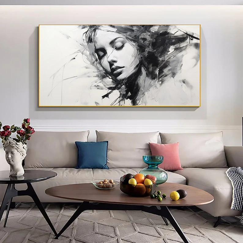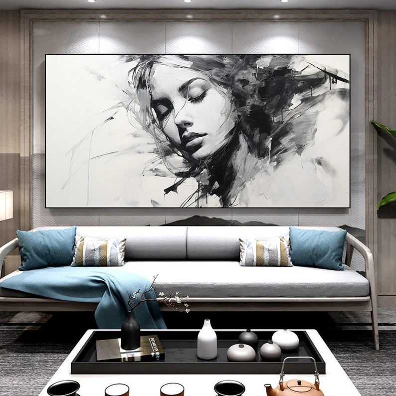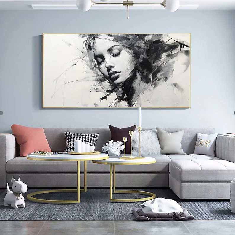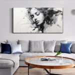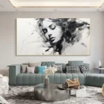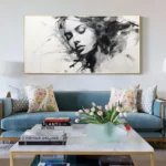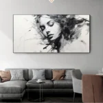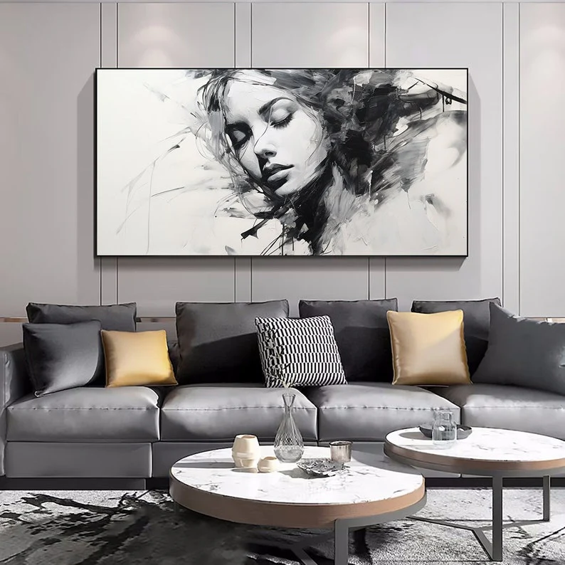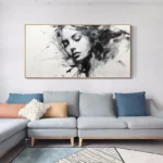 This beautiful woman shines on the canvas with a sense of mystery and melancholy. Her name Alyssia is derived from the Greek flower Alyssos, a flower that is said to cure madness! Keeping every home interior sane in a beautiful, black & white way!