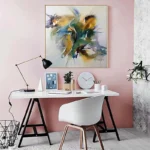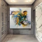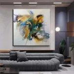 In Amok, splashes of green, blue, and gold collide in a whirlwind of emotion. Perfect for modern spaces, it adds a lively touch that draws the eye and sparks conversation.
