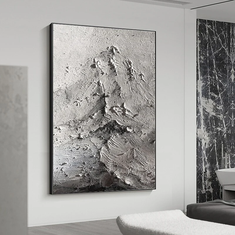 This artwork brings the quiet strength of a mountain range to your home, with textured layers and muted tones that evoke the passage of time. It’s a piece that adds a subtle yet powerful presence to any space.