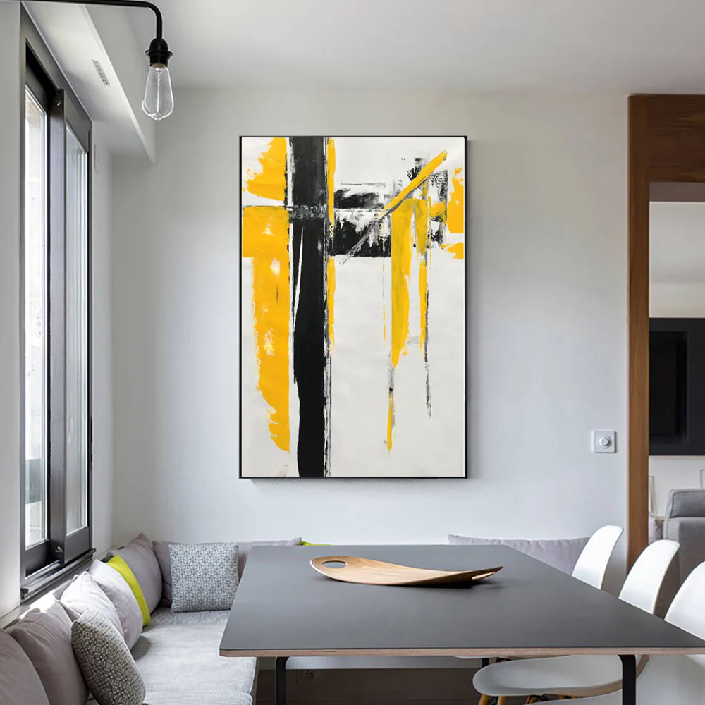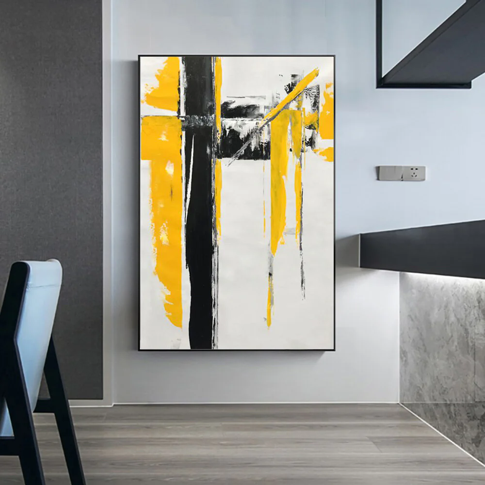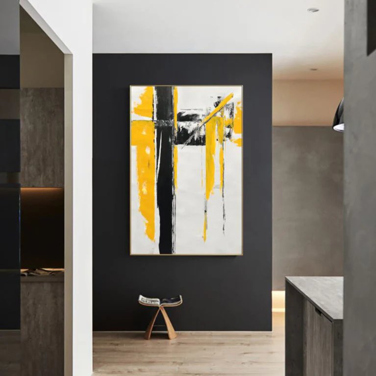 We have an avid admirer of this abstract, modern art piece! ‘Avidity’ is a unique piece with a beautiful contrasting composition and rich yellow colors. This piece creates a sophisticated and stylish wherever it is portrayed!