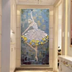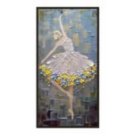 This bewildering ballerina balances beautifully! The mosaic-style background contrasts impressively with the bubbly yellow and blue bubbles that extend her majestic white dress. Ballet, dedication to art, style and perseverance, summarized in one eye-catching portrait!