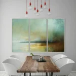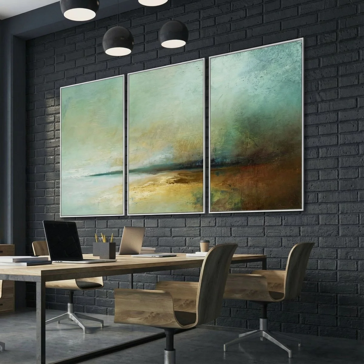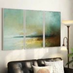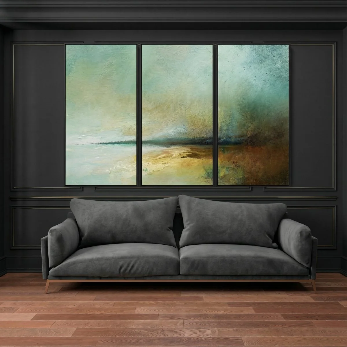 Beautiful and melancholic, like a beach at night. No sunlight to enjoy the warmth, only the silent rhythm of the crashing waves. This canvas set portrays a stunning landscape in a distinctive style. So stunning, that you almost want to dive into the canvas! â�