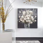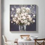 This fantastic still-life painting captured the beautiful blossoming co with amazing style! The many details and the realistic way of painting make it really come alive as if you could almost pluck the flowers right out of its vase!