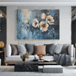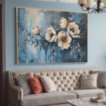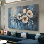 This art piece feels like a gentle celebration of flowers in full bloom. Soft cream petals float over a deep blue background. Loose brushstrokes give the flowers life and movement. Bloomist brings calm beauty and a fresh feeling, like a quiet garden moment captured on canvas!
