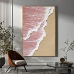 Looking at this artwork feels like watching waves roll in at sunset. Pink tones soften the scene while textured white lines add a sense of motion. The subtle painting style feels calm and light, filling your space with warmth and a gentle seaside feeling.
