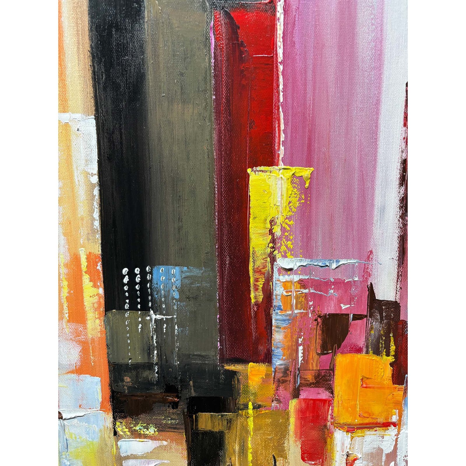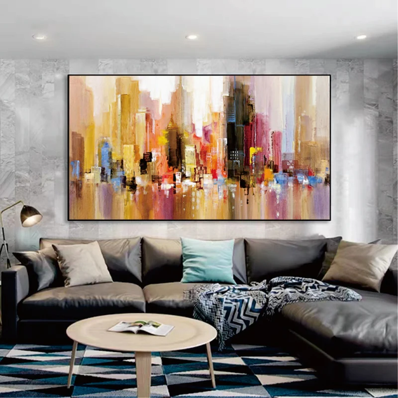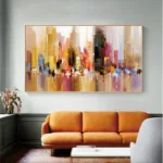 Witness the enchantment of a city skyline embraced by morning colors, painted in a unique impressionistic style. The blending colors capture the energy of dawn, infusing the canvas with the serene vibrancy of bright city mornings.