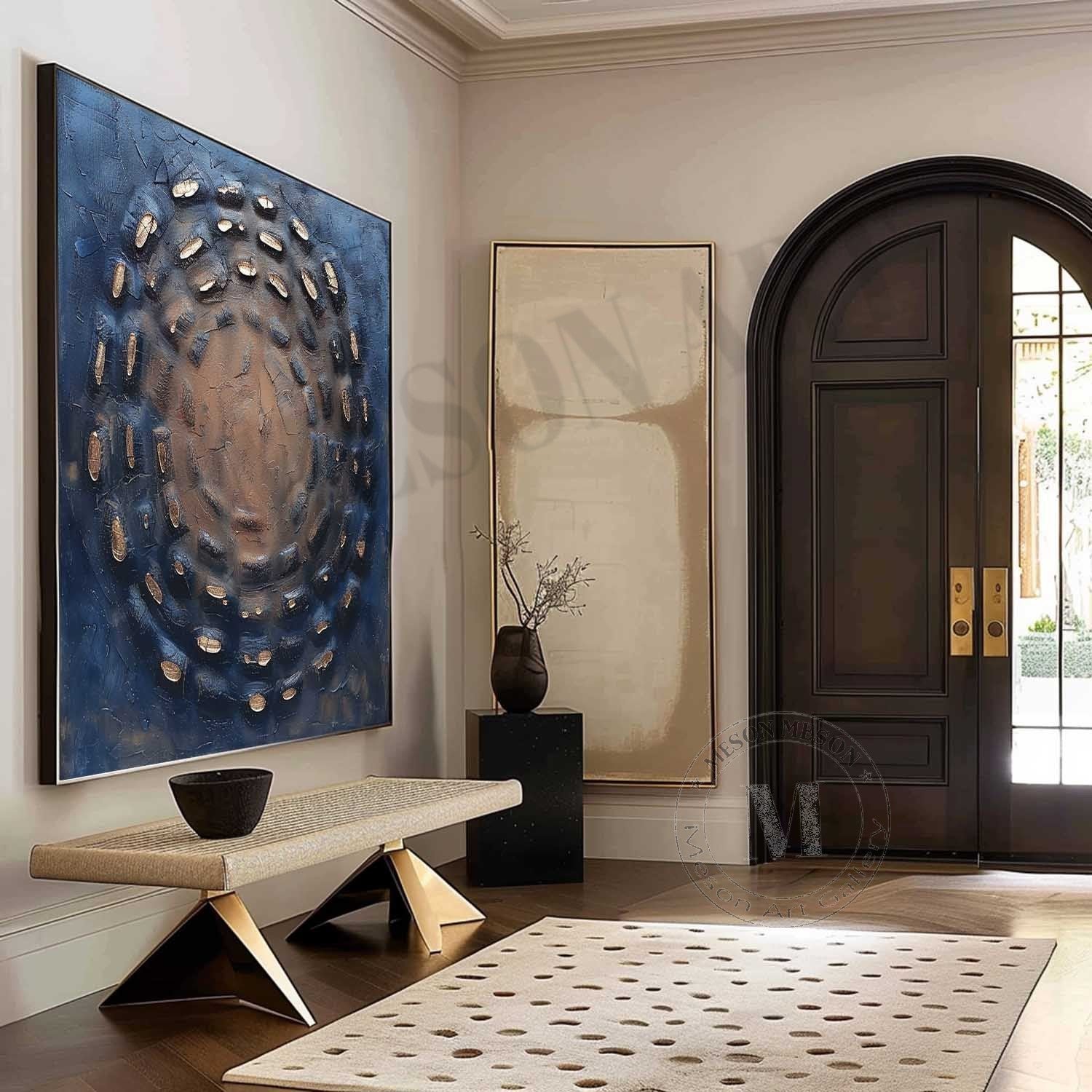 This artwork is destined to be the dramatic centerpiece of any sophisticated interior. It is perfectly suited for a modern living room, a chic office, or an elegant dining space where it can command attention. “Bronze Vortex” complements decors that appreciate bold design, luxurious details, and the raw beauty of textural art.