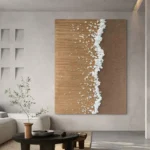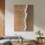 Warm brown tones stretch across the canvas while white waves move gently through them. The abstract style keeps it simple and soothing. Brownsugar Waves brings calm focus and a grounded feeling that makes any space feel peaceful.
