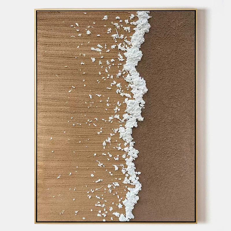 Warm brown tones stretch across the canvas while white waves move gently through them. The abstract style keeps it simple and soothing. Brownsugar Waves brings calm focus and a grounded feeling that makes any space feel peaceful.