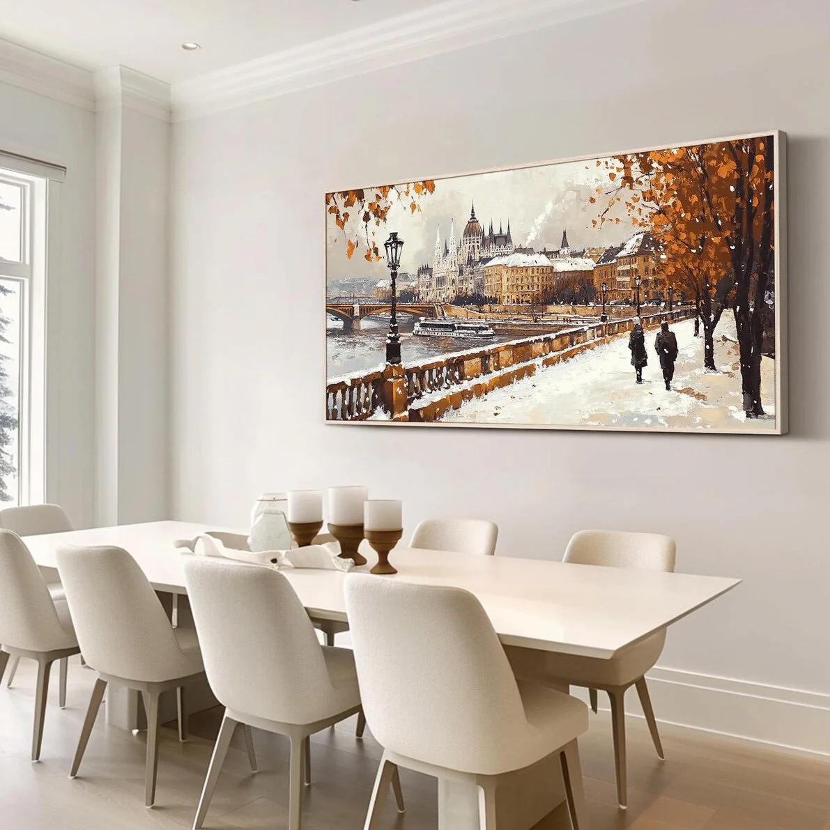 As an hommage to the beautiful city of Budapest, this autumn piece captures its unique charm and lush nature beautifully! With vibrant colors and an inviting composition, this painting is a stunning addition to any home interior!