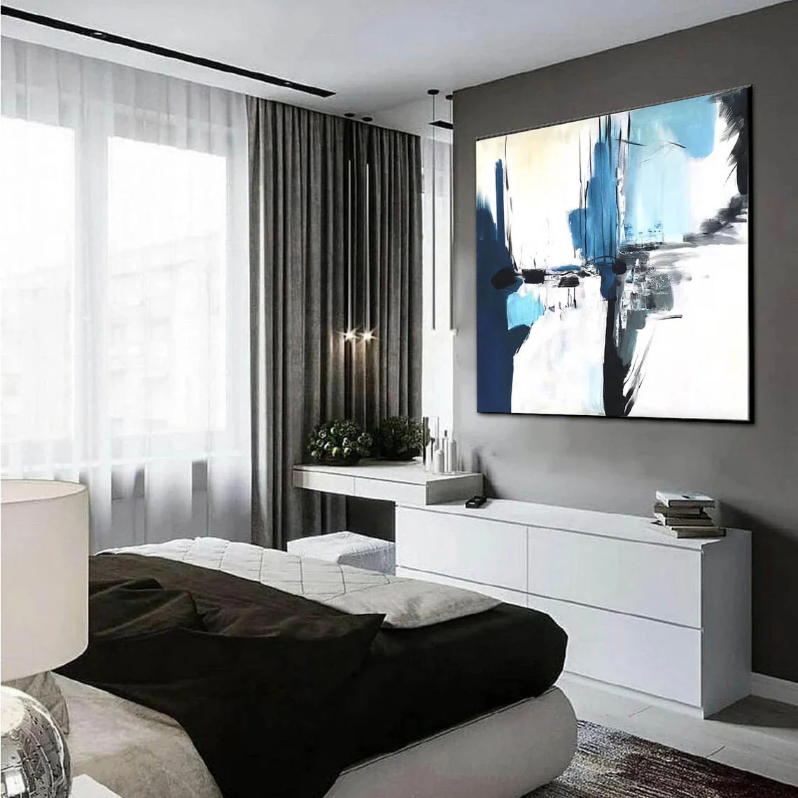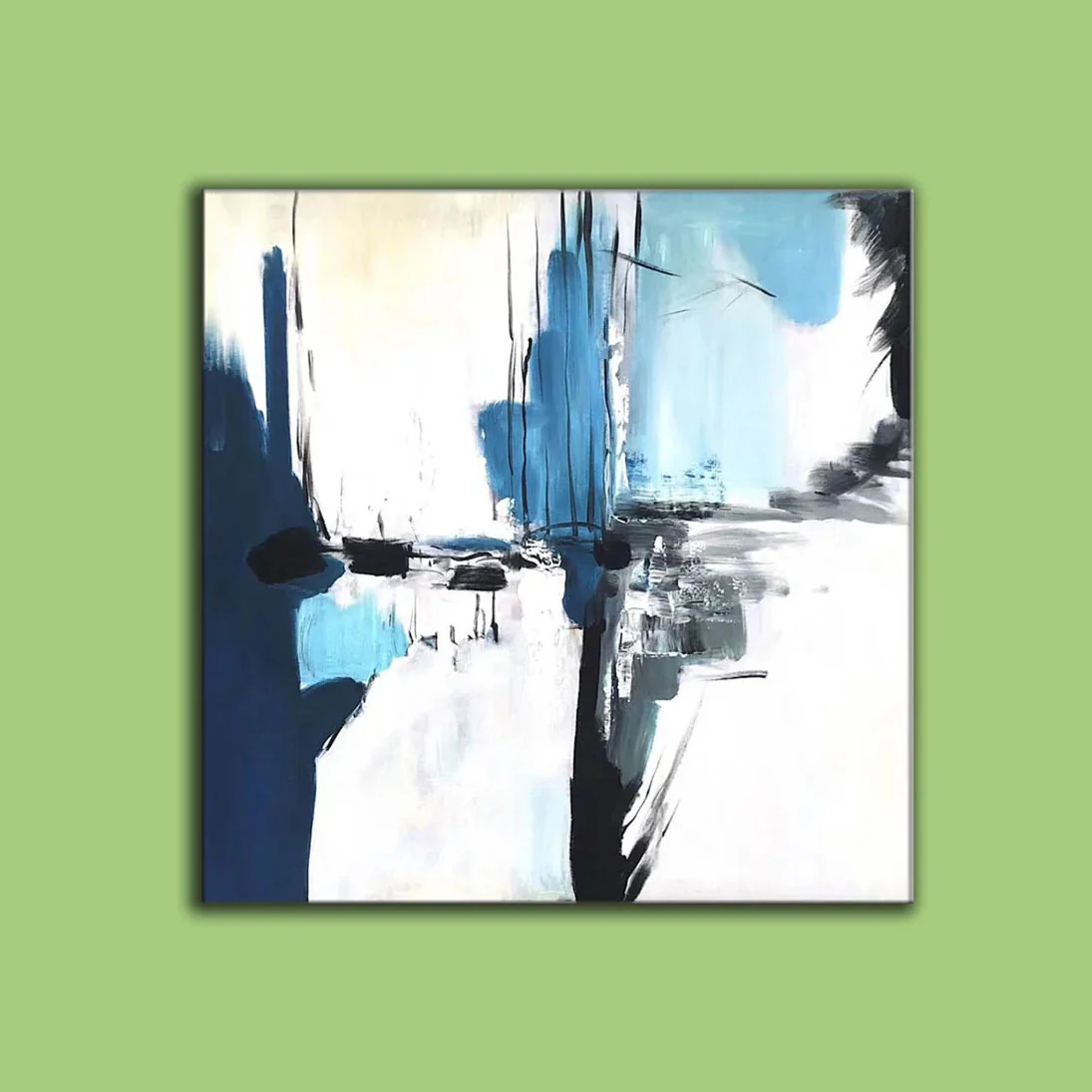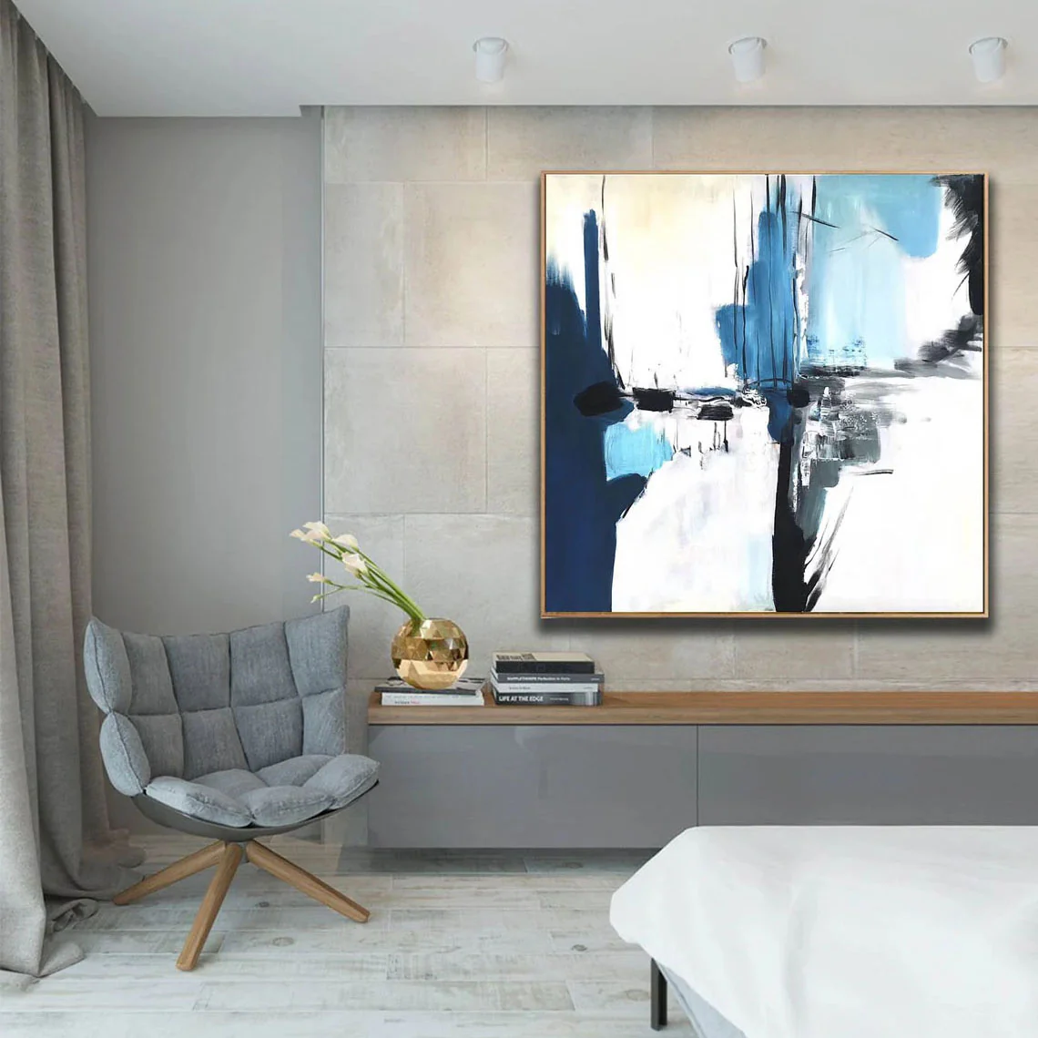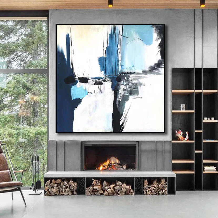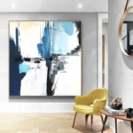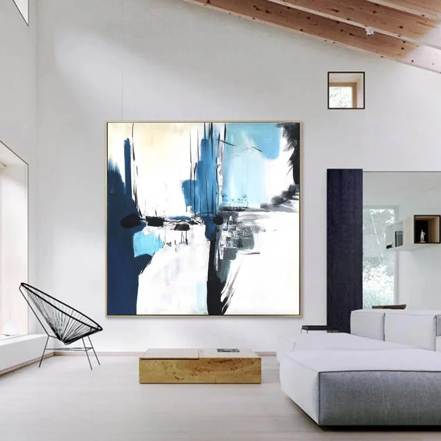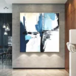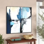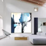 Calabria feels like a memory of sea, cliffs, and light blended together. Blue and white tones crash and rest at the same time. The abstract style uses bold strokes and strong contrast. This piece creates freshness and calm, making the space feel open, modern, and quietly powerful.