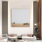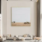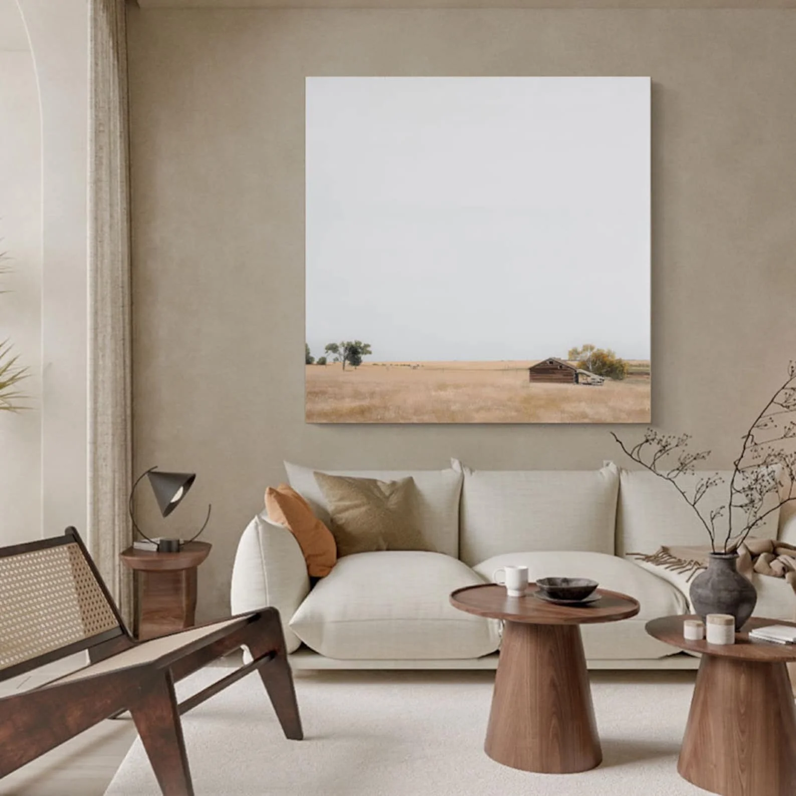 This minimalistic piece feels like a place you reach after a long journey. Where a small house awaits you quietly in endless fields, untouched by any noise or hurry. The soft colors and open space feel gentle and calm. Cape Solitude brings the comfort of being alone, without ever feeling lonely.