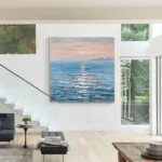 Wake up to the magic of the Cerulean Sunrise every day. This painting’s soothing blues and soft pinks capture the essence of a peaceful morning by the sea. Perfect for creating a serene atmosphere in any room.