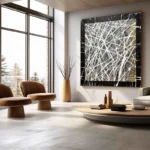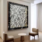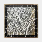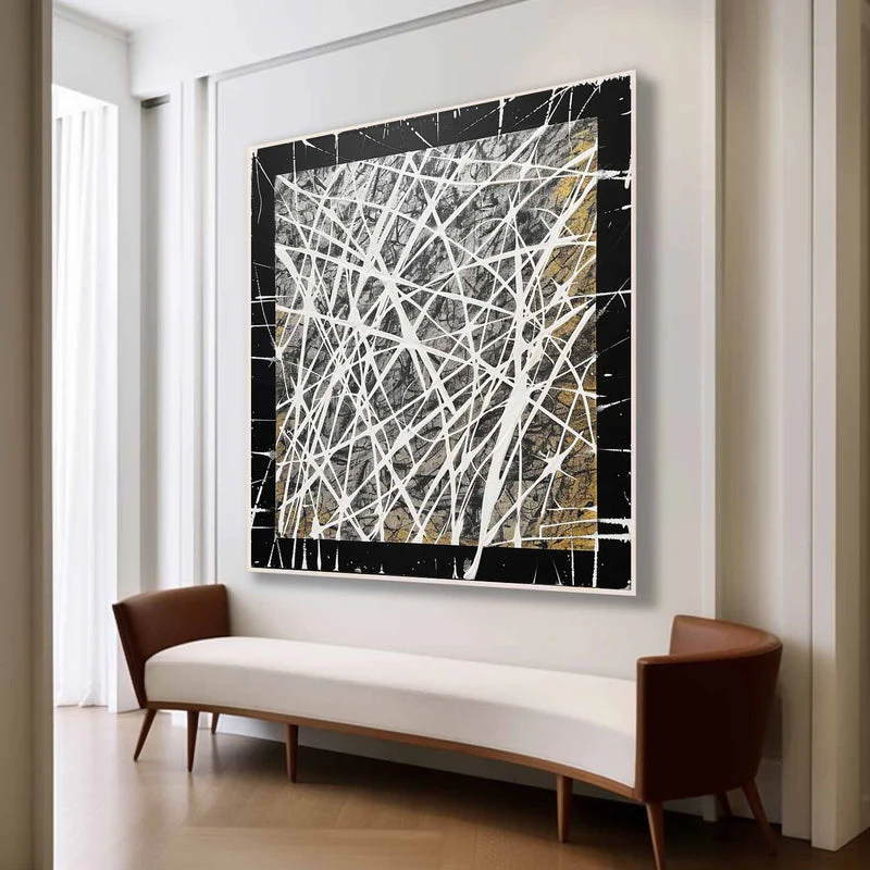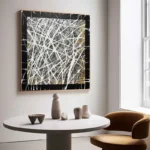 At first, it’s chaos. Then you look longer. And you start to see patterns. It’s like someone poured all their ideas at once, and now they’re dancing on the canvas. The black edge wraps it in, like it’s being held together before it breaks free again.