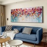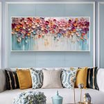 As a stunning oversized centerpiece, “Chromatic Cascade” is perfectly scaled for the space above a large sofa, a dining room buffet, or a master bed. Its vibrant, contemporary energy makes it an ideal fit for modern, eclectic, or even minimalist spaces in need of a powerful burst of color. Let this extraordinary textured floral wall art transform your room into a gallery of happiness and sophisticated style.