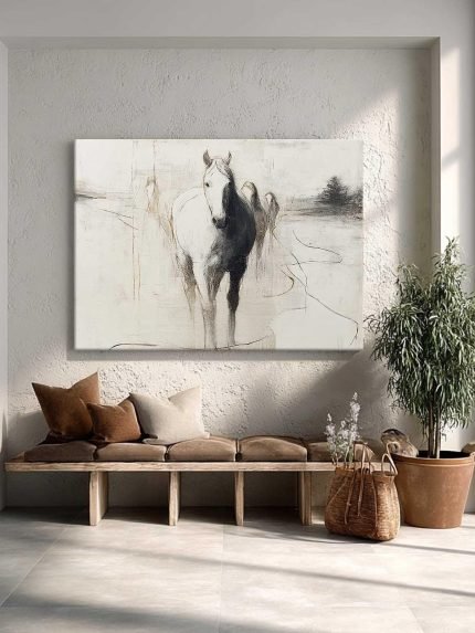 With its strong vertical orientation and profound character, “Columns of Balance” is the perfect statement piece for an interior that values authentic, meaningful art. It brings a dramatic yet grounding presence to an industrial loft, a minimalist living room, or a sophisticated office. This is more than a painting; it’s a tactile story of balance for your wall.