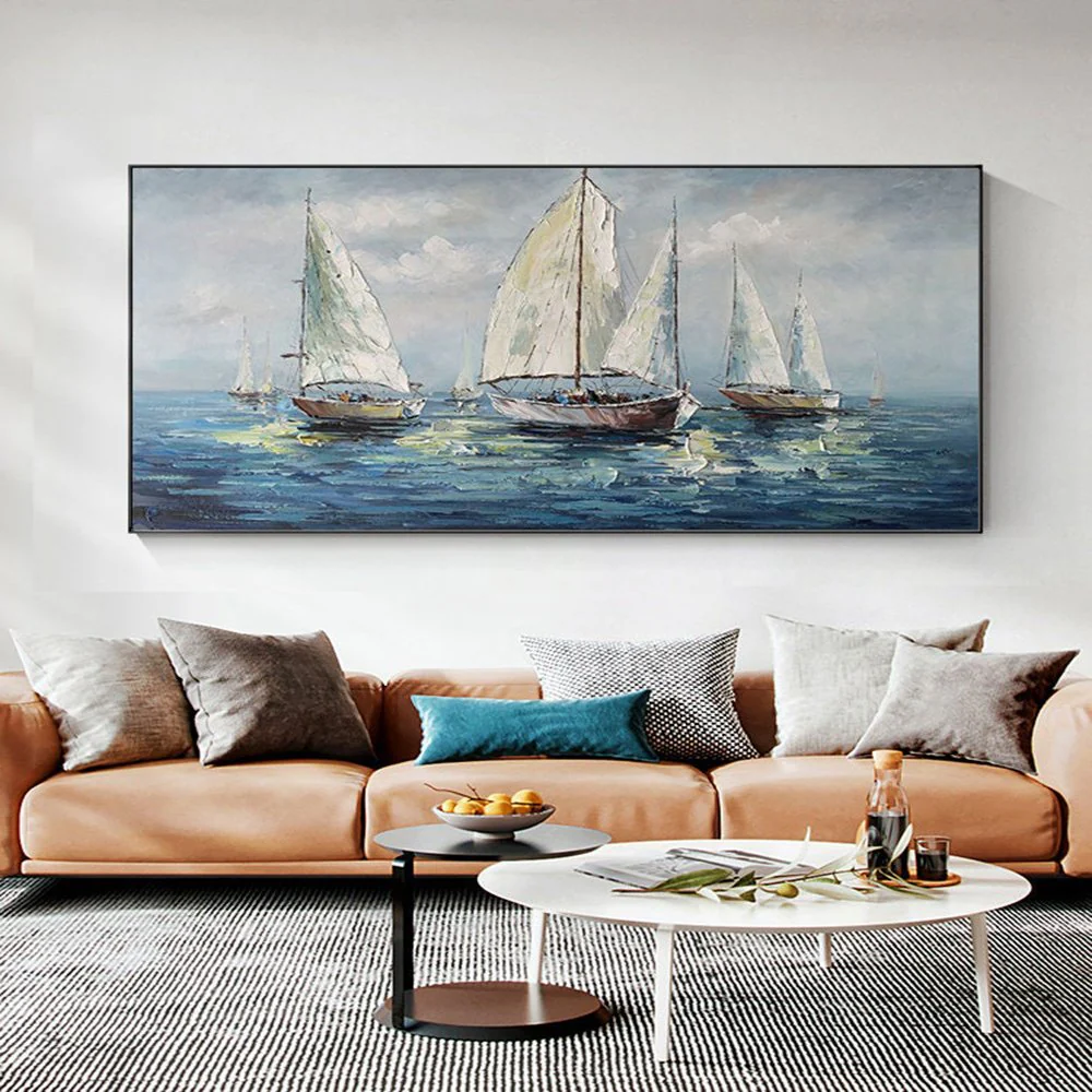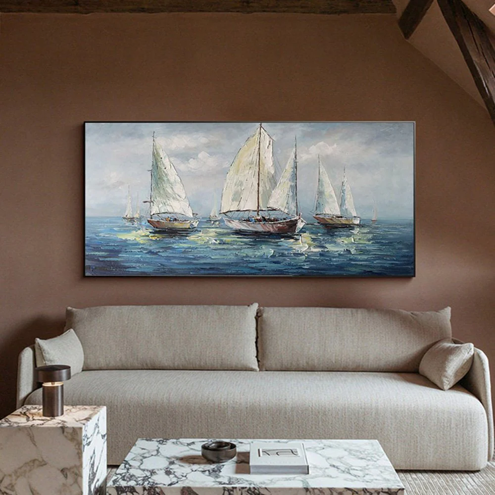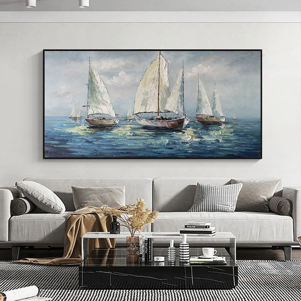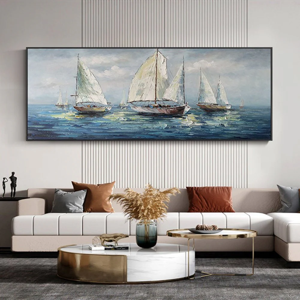 Companionship invites you to feel the gentle breeze and the fellowship of sailing friends. This artwork’s tranquil scene of sailboats on open waters adds a touch of nautical elegance to your home.