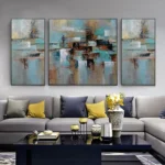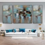 With the use of a special technique, this unique canvas set almost looks like it is covered in a beautiful layer of rust. Brown and blue colors dance along the canvas, giving this canvas set a dynamic and stunning atmosphere! �