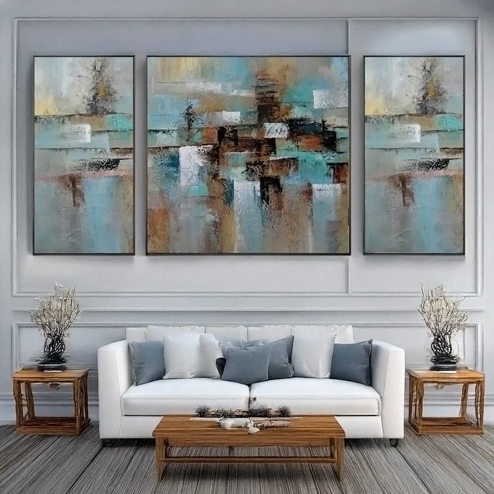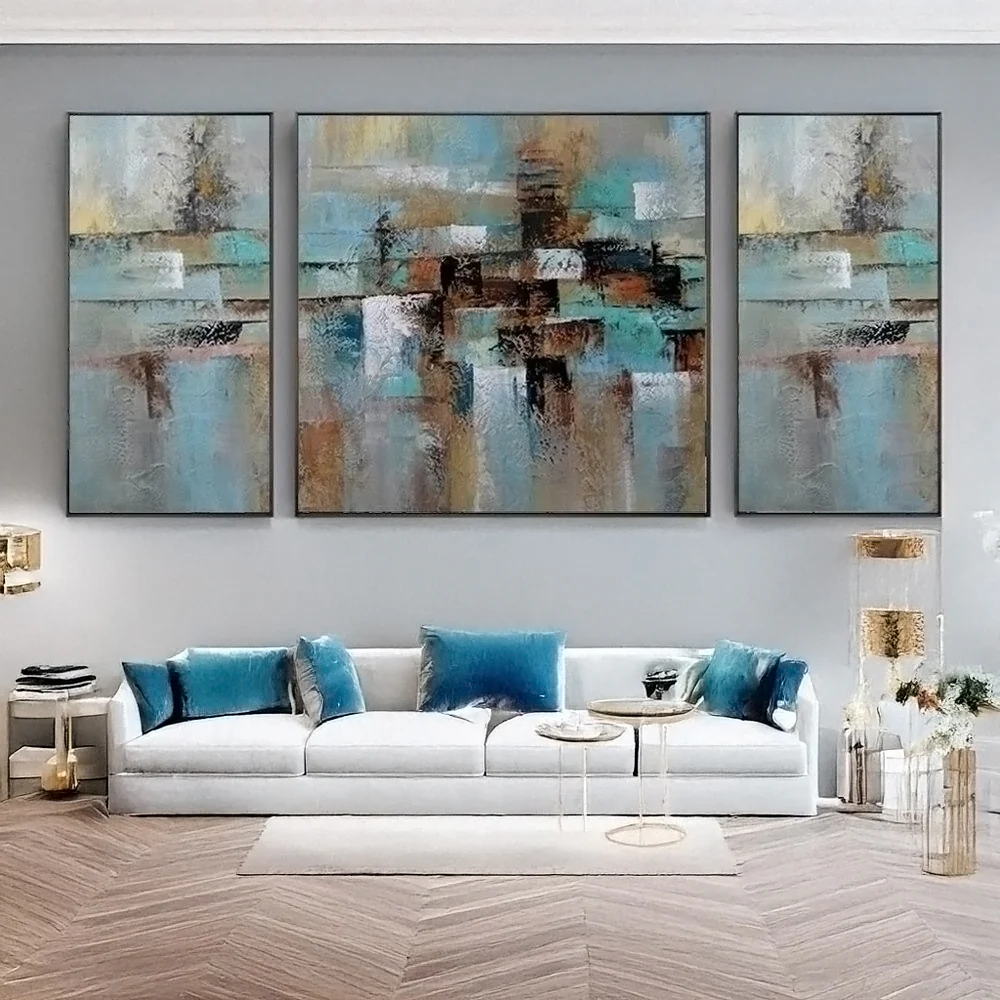 With the use of a special technique, this unique canvas set almost looks like it is covered in a beautiful layer of rust. Brown and blue colors dance along the canvas, giving this canvas set a dynamic and stunning atmosphere! �