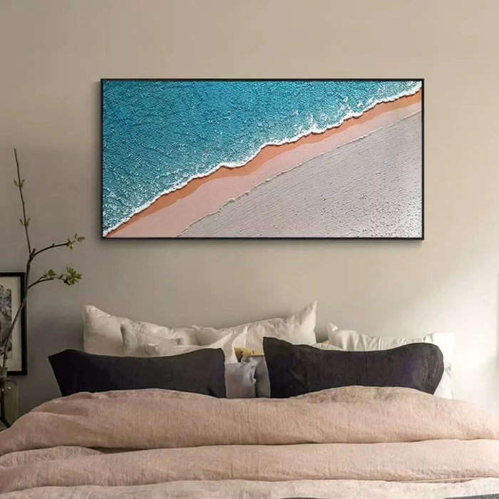 Crashing Ashore captures the quiet moment when the sea gently reaches the sand after a long journey. Soft blue water meets pale shore in calm layers. The painting feels peaceful and fresh, like standing barefoot at the edge of the ocean while your thoughts slowly drift away
