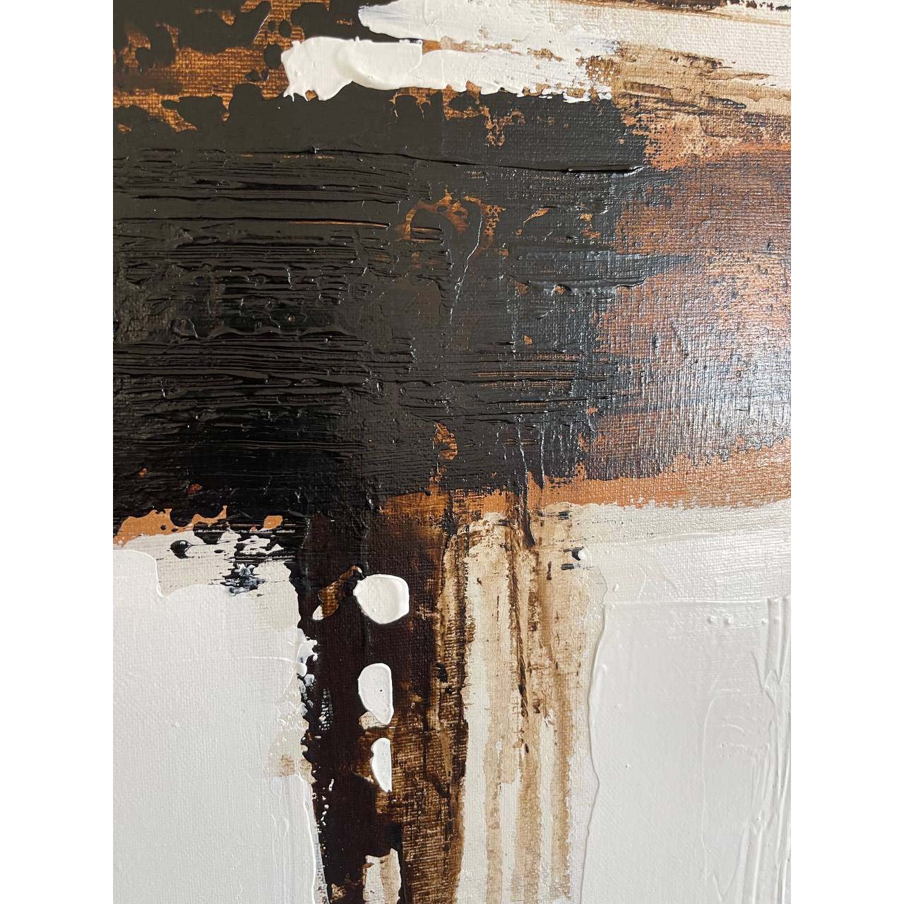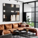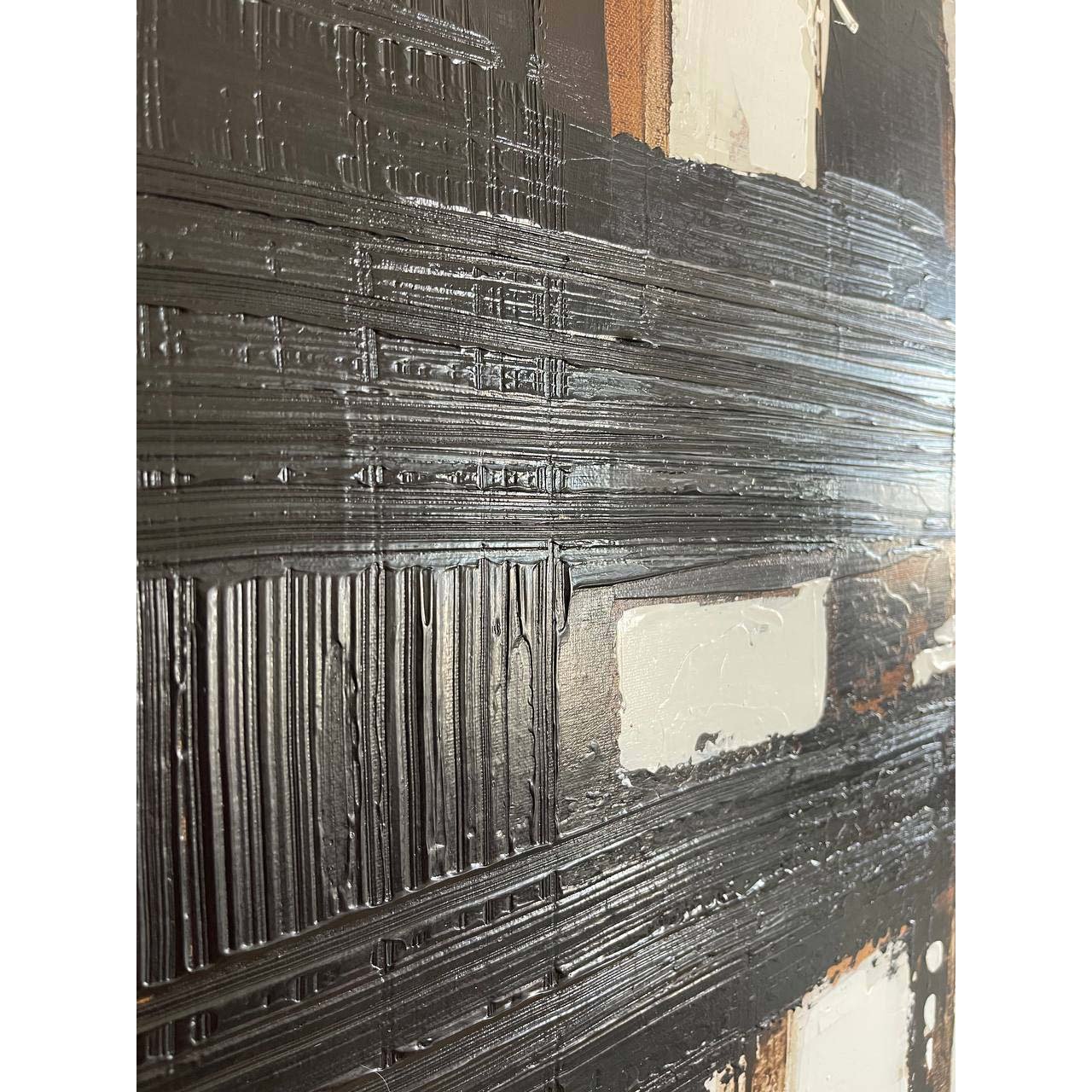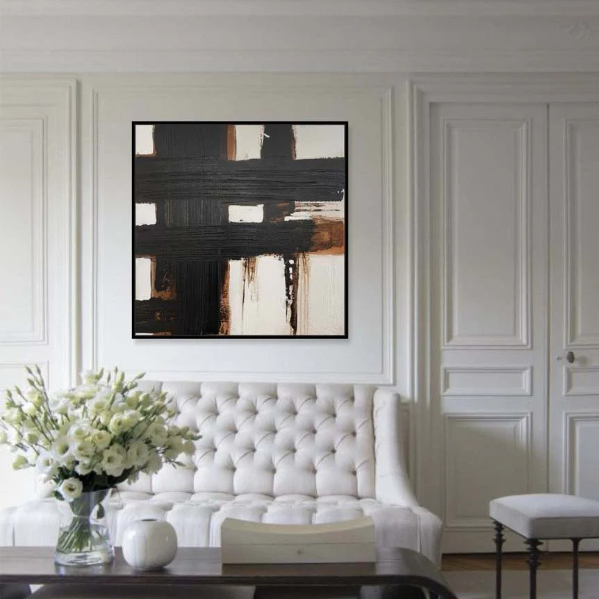 Dark Grid tells a story of structure and calm control through strong black lines and warm undertones. The composition feels steady and intentional, like a map you slowly learn to read. This modern piece adds character and focus, giving the space a confident and stylish heartbeat