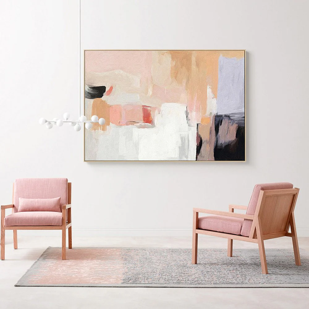 There’s something magical about this painting. It doesn’t just sit on the wall, it invites you to pause and get lost in its soft colors and flowing forms. It’s the perfect mix of modern abstraction and quiet beauty that faintly reminds of a beautiful daydream….