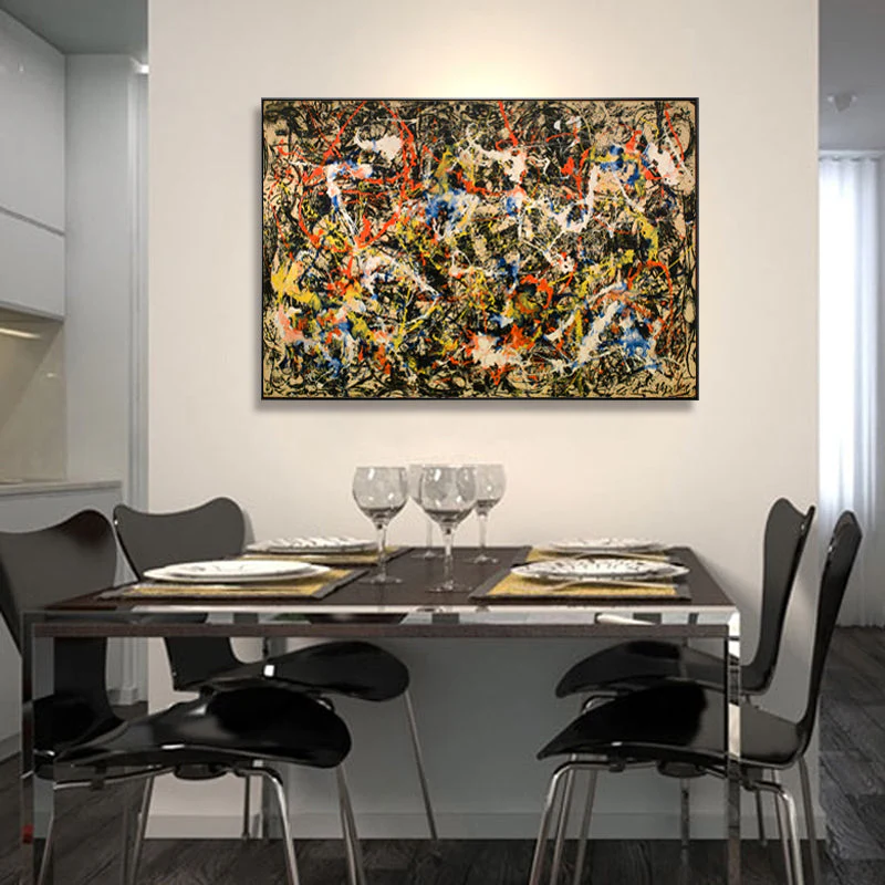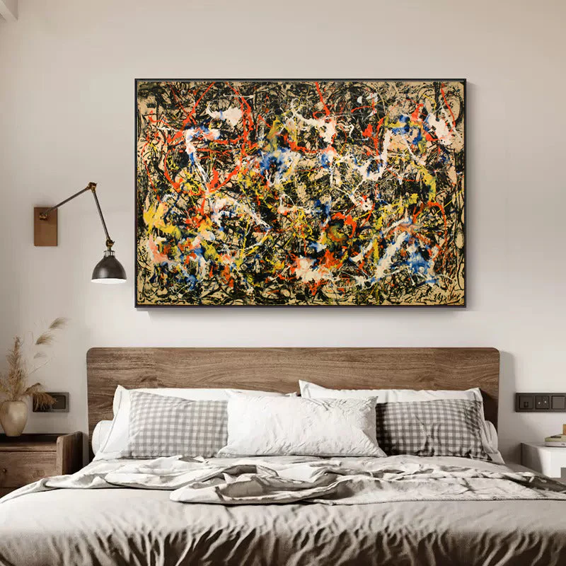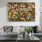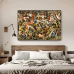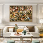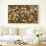 In ‘Division’, colors swirl and mix in a lively chaos, creating an exciting and eye-catching composition. This stunning artwork invites you to explore its intriguing divisions, making you discover something new anytime you look at it.