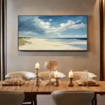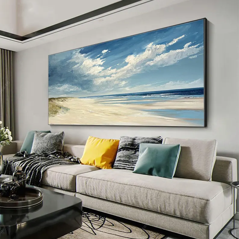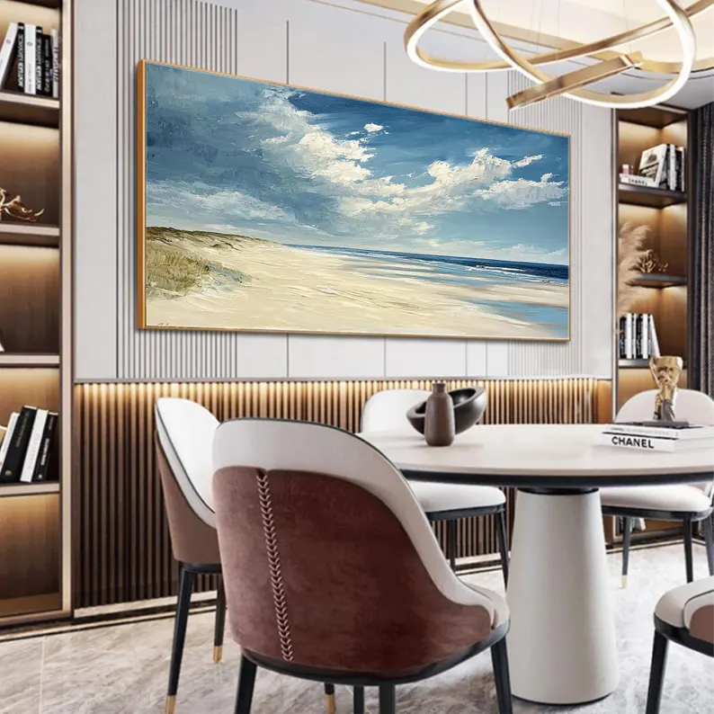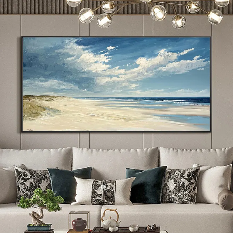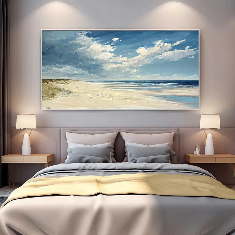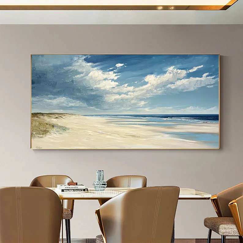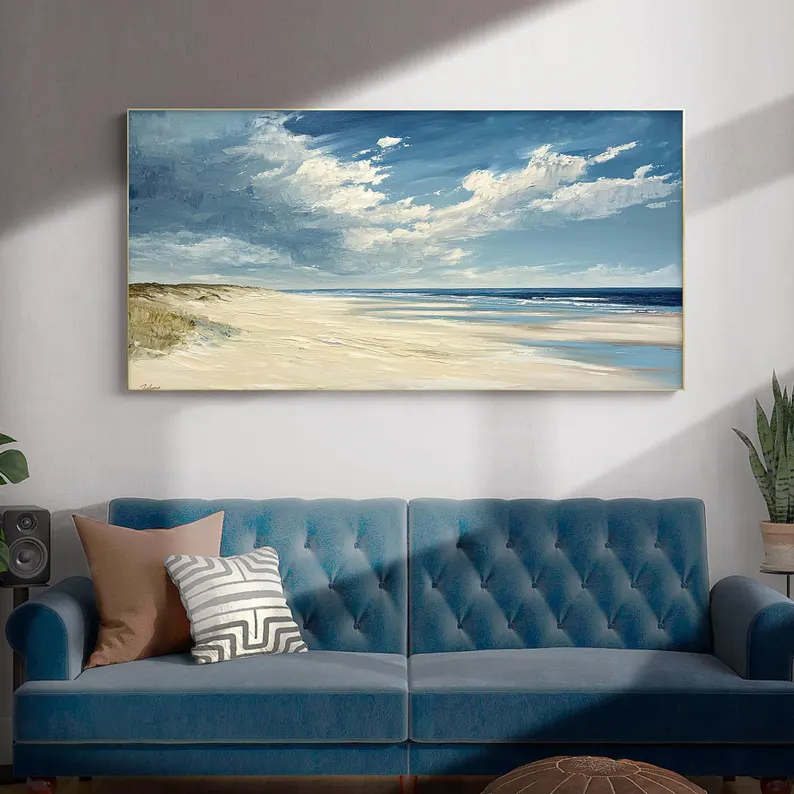 Dunes captures the calm beauty of wind shaped sand and endless horizons. The soft colors feel light and natural, like a memory from a slow summer day. This beautiful piece adds warmth and balance, making the space feel open, calm, and welcoming.