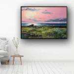 In Dusk Dreams soft skies and textured land come together in a calm evening scene. The colors feel warm without being loud. It brings a quiet sense of peace that gently fills the space with calm energy
