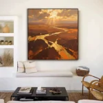 El Río Dorado means ‘The Golden River’ in English. And in this piece, sunlight kisses the land, turning the water into a stunning gold. The earthy tones embrace the winding river, while the sky opens up, creating a timeless moment of beauty and peace.