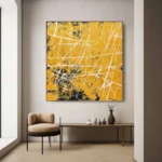 Energetic bursts from the canvas with bold yellow tones and lively white lines! The painting feels like motion frozen in time, full of confidence and rhythm. Dark textures add depth and strong contrasts, making this artwork lift the room instantly and fill your space with creative drive and positive momentum!