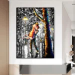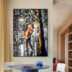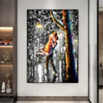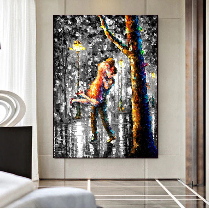 This painting tells the story of a love that’s just beginning, with two people lost in a moment of pure joy. The dynamic colors and lively composition make it an ideal piece for celebrating the magic of romance.