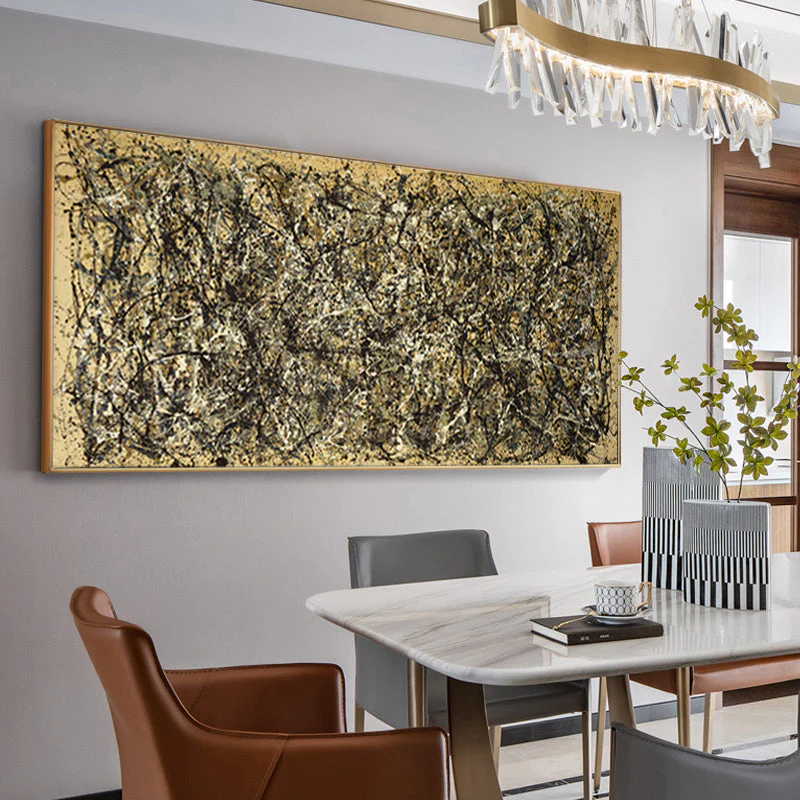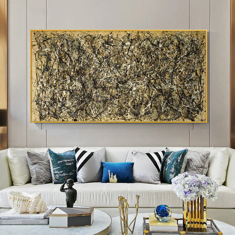 Elevate your interior with this captivating artistic ensemble, where vibrant yellow sets the stage for a mesmerizing display of swirling lines. Dynamic black and white hues unite, creating a harmonious composition that gives off a beautiful energy and movement.