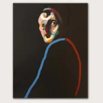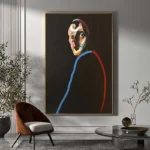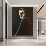 Eyes of the Lost captures a melancholic gaze with haunting beauty. The vibrant colors contrast against the dark background, evoking a sense of deep emotion and introspection, perfect for adding a touch of mystery to any space.