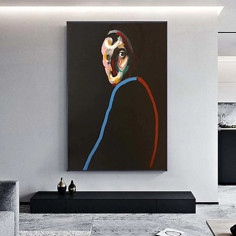 Eyes of the Lost captures a melancholic gaze with haunting beauty. The vibrant colors contrast against the dark background, evoking a sense of deep emotion and introspection, perfect for adding a touch of mystery to any space.