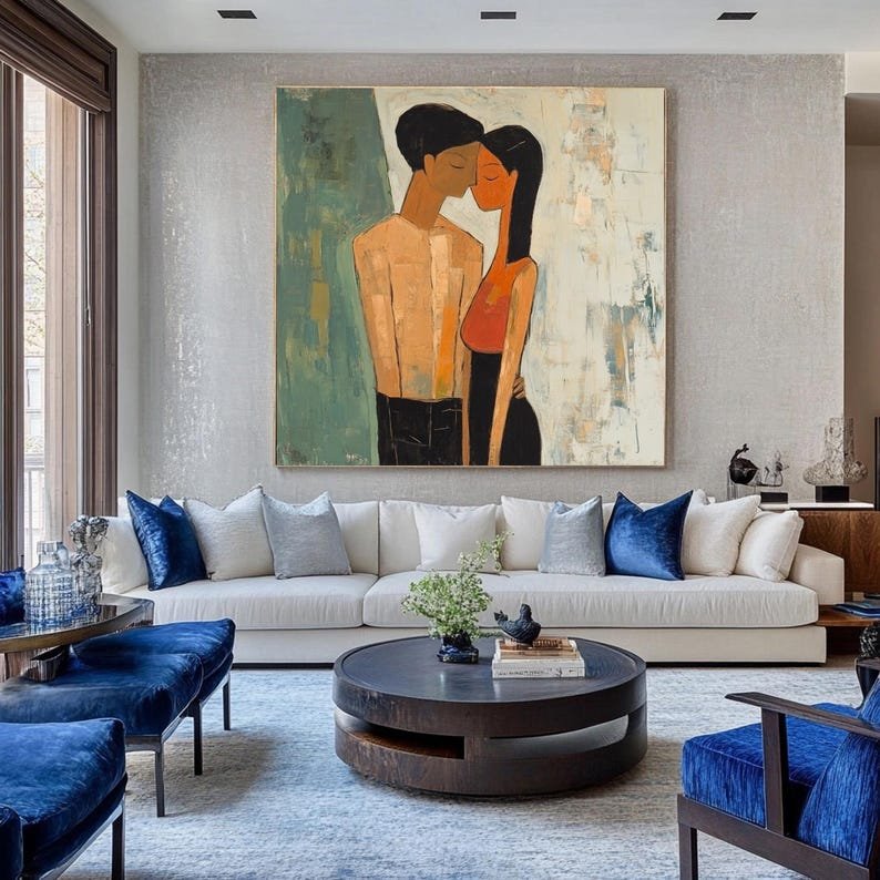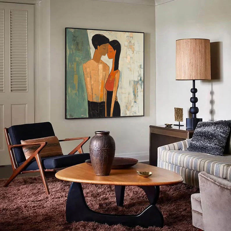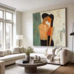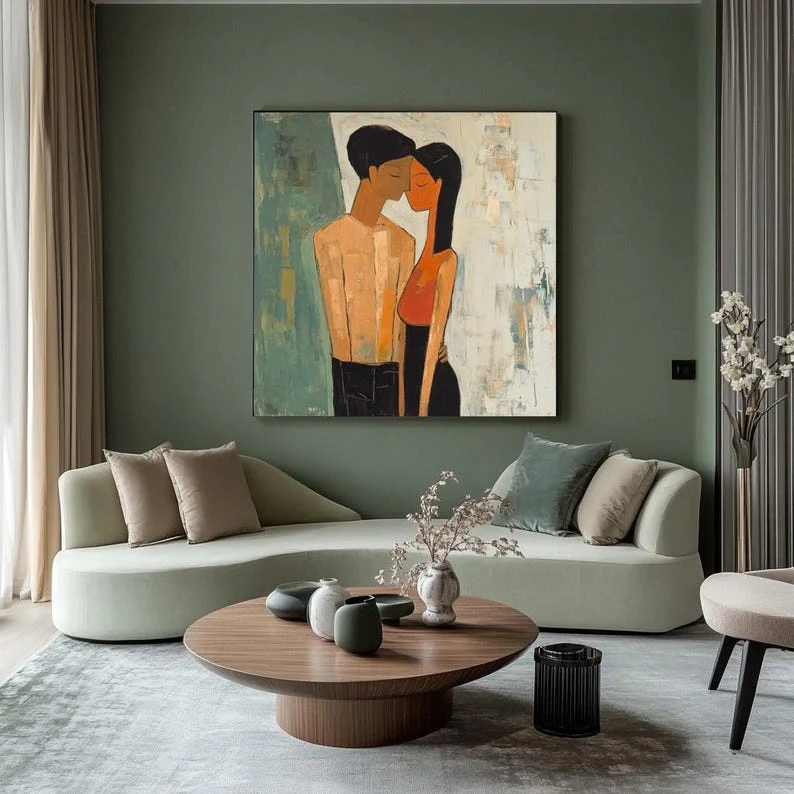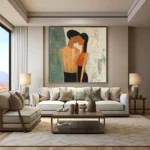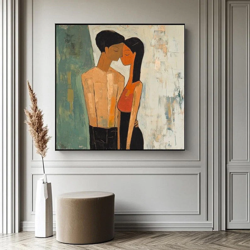Love is in the air with Fiancée’s. This artwork beautifully shows the quiet intimacy of a couple lost in their own world. The soft textures and warm tones make it a perfect statement piece, celebrating love in its purest form. Perfect for those who believe that true love speaks without words!