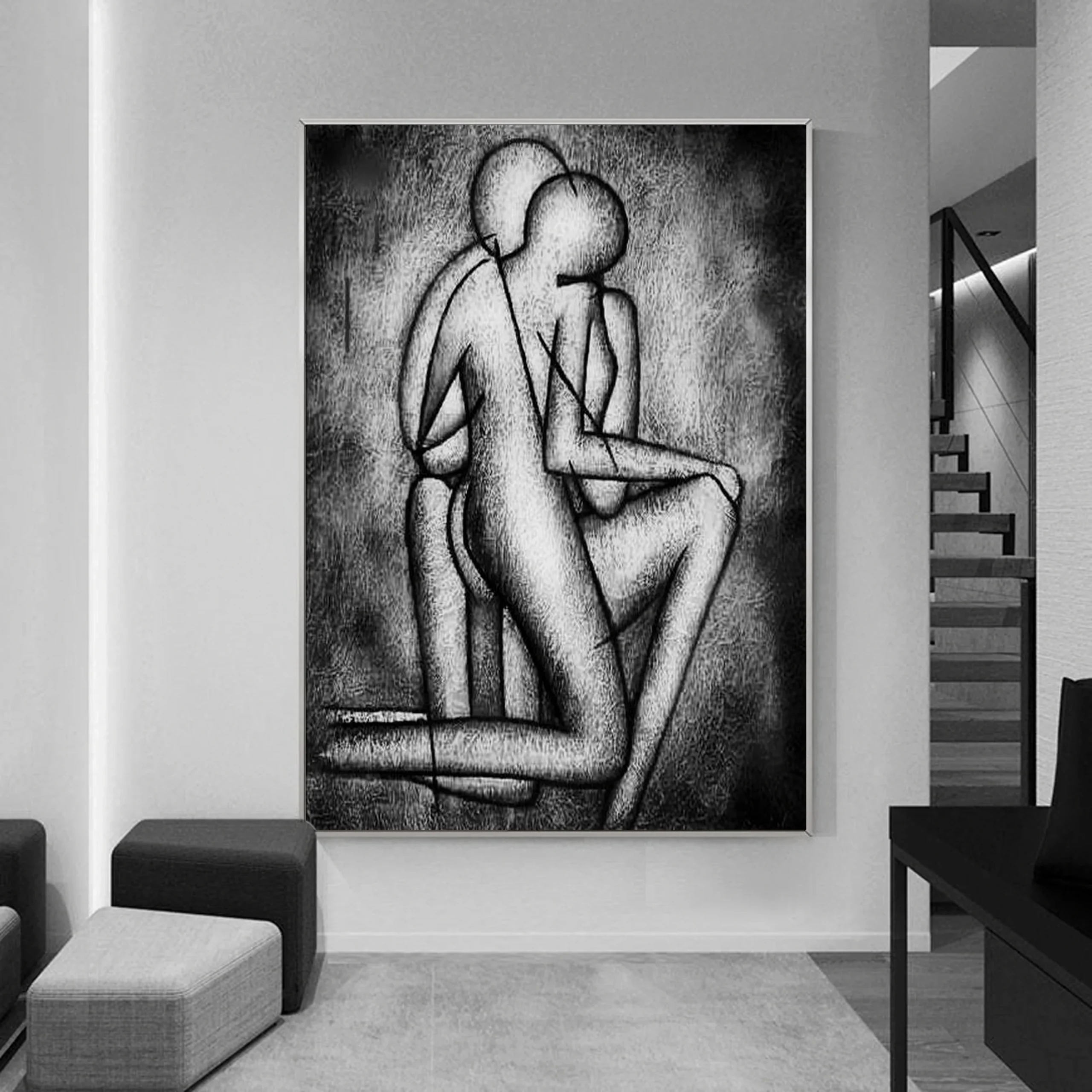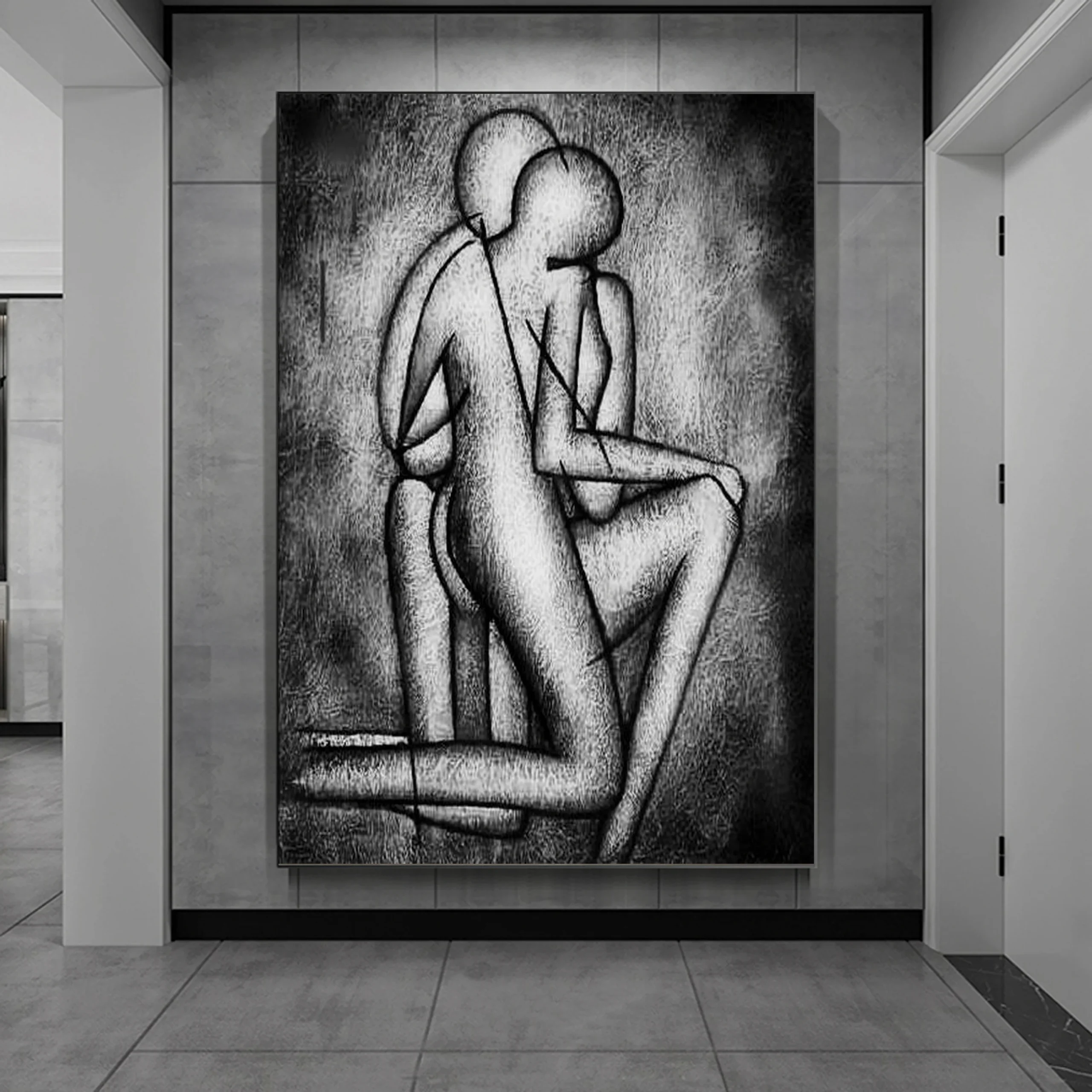 This unique black-and-white painting portrays two mysterious figures in the dark. Who are they? What are they doing? The only thing we know is that this artwork catches our attention, and doesn’t let it go!
