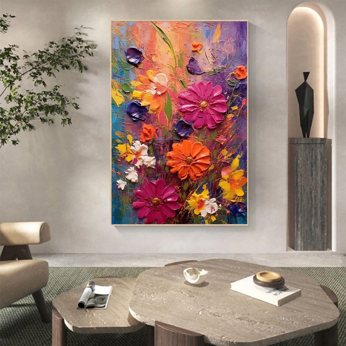 Autumnal Tapestry: A Richly Textured Floral Canvas Painting for a Warm Interior